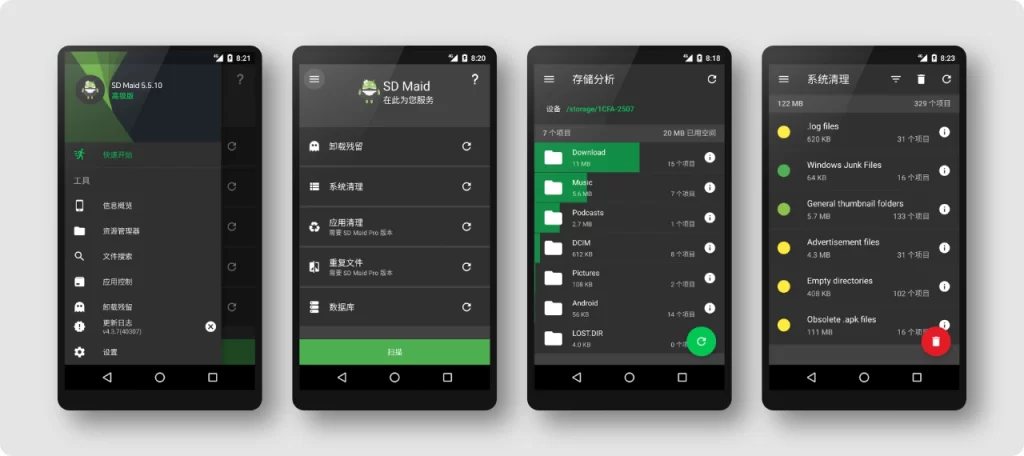 SD女佣破解专业版 由歪果不求仁(www.wgbqr.com)整理发布. SD Maid (SD女佣) 是一款安卓手机垃圾清理软件,SDMaid清理器可以快速扫描系统垃圾,卸载残留,应用缓存,数据库等数据,提供文件管理器,文件搜索,应用管理等功能。手机使用时间一长,各种缓存数据和卸载应用遗留的垃圾文件就越积越多,如果不及时清理,不仅占用储存空间,还会对后续应用更新产生问题,拖慢手机的运行速度,这时候就该轮到手机垃圾清理利器SD女佣清理工具大显身手了。