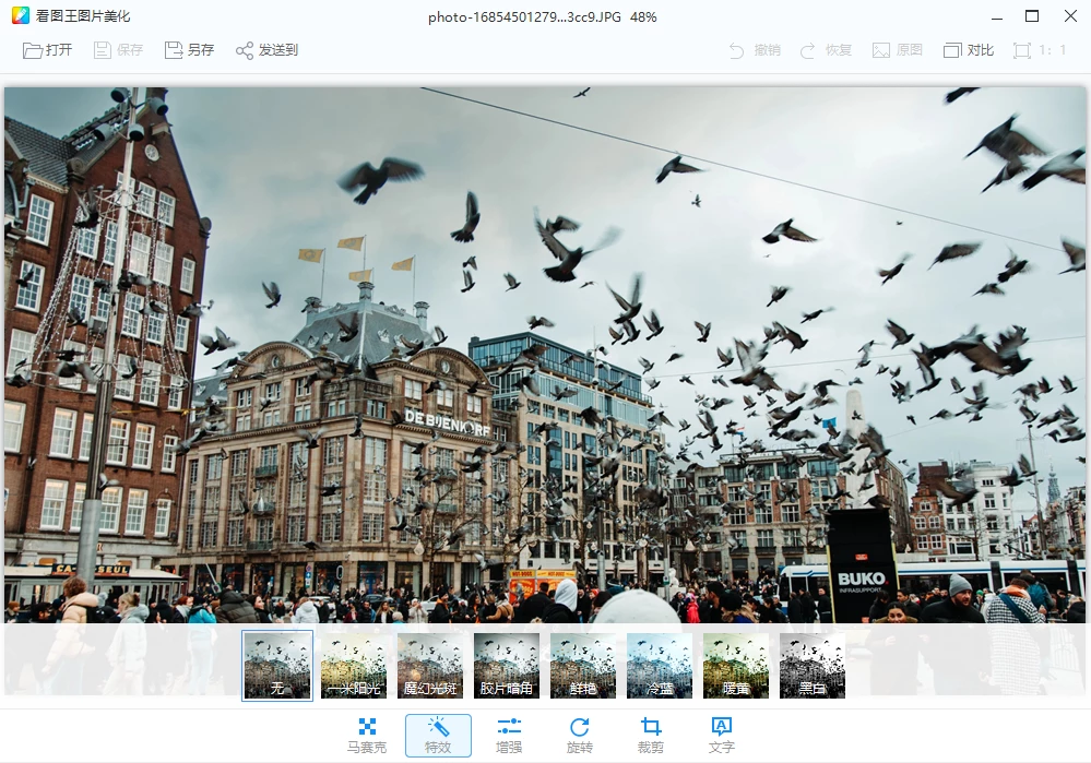 看图王为您提供简洁易操作的图片美化功能,马赛克、特效、增强、旋转、裁剪、文字。