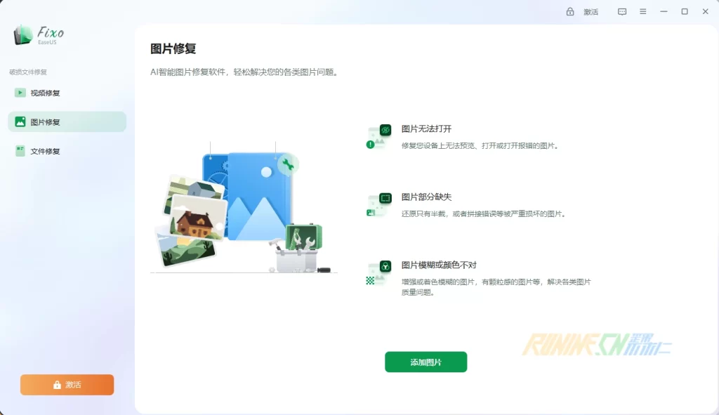 EaseUS Fixo照片修复功能可以修复灰显照片, 图片模糊, 颗粒状图片, 像素化图片, 曝光过度的照片, 照片曝光不足, 图像中的颜色损坏或错误, 图像拼接错误等问题,无论图片如何损坏。支持修复各种照片格式,包括JPEG,PNG,JPG,CR3,CR2,NEF,NRW,RAF,DNG,ARW,GPR,TIF,TIFF,CRW,GIF,SR2和ORF。