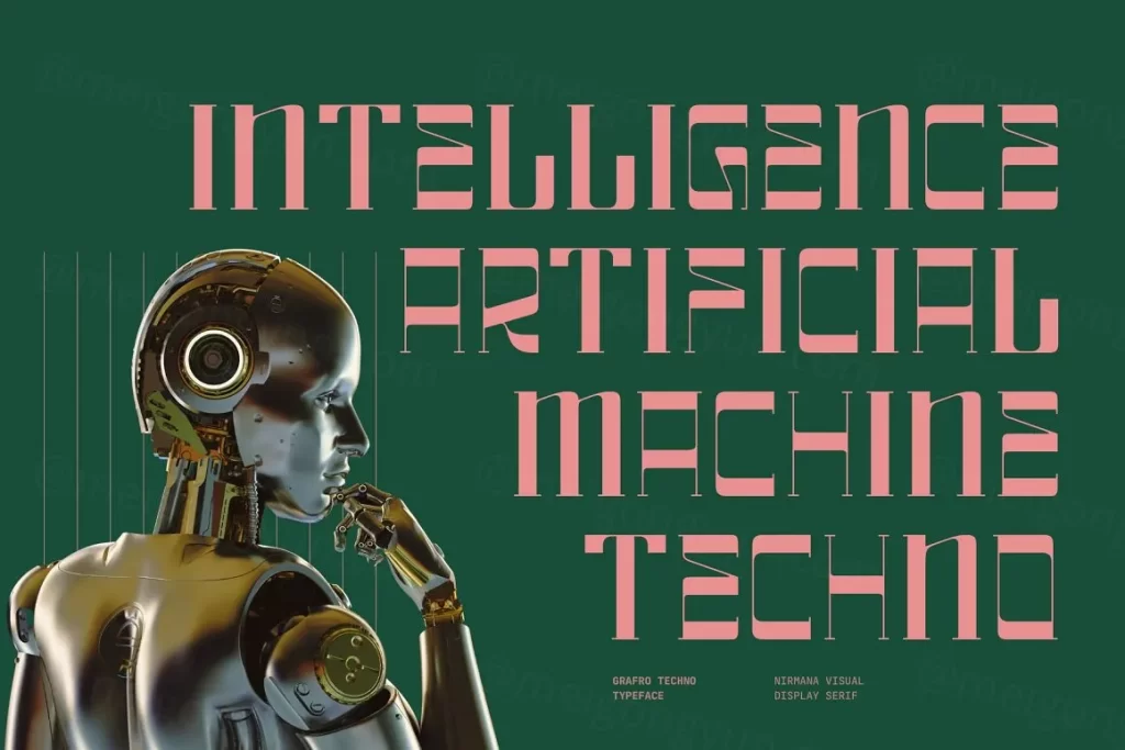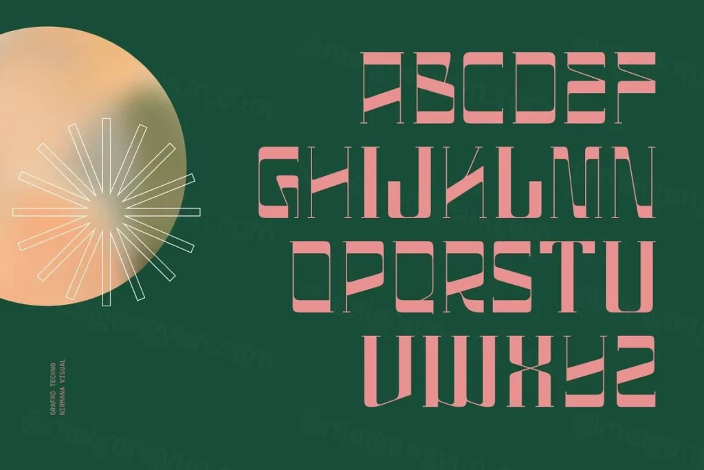 Grafro Techno - Display Font 尖端的技术字体,旨在为您的设计增添未来感和时尚美感。凭借其鲜明的线条、几何形式和高科技氛围,这种字体非常适合需要现代和前瞻性视觉识别的项目。