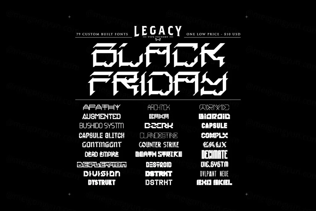 海外设计师全套赛博朋克科幻机械英文字体 LEGACY OF DEFEAT - Whole Font Collection
