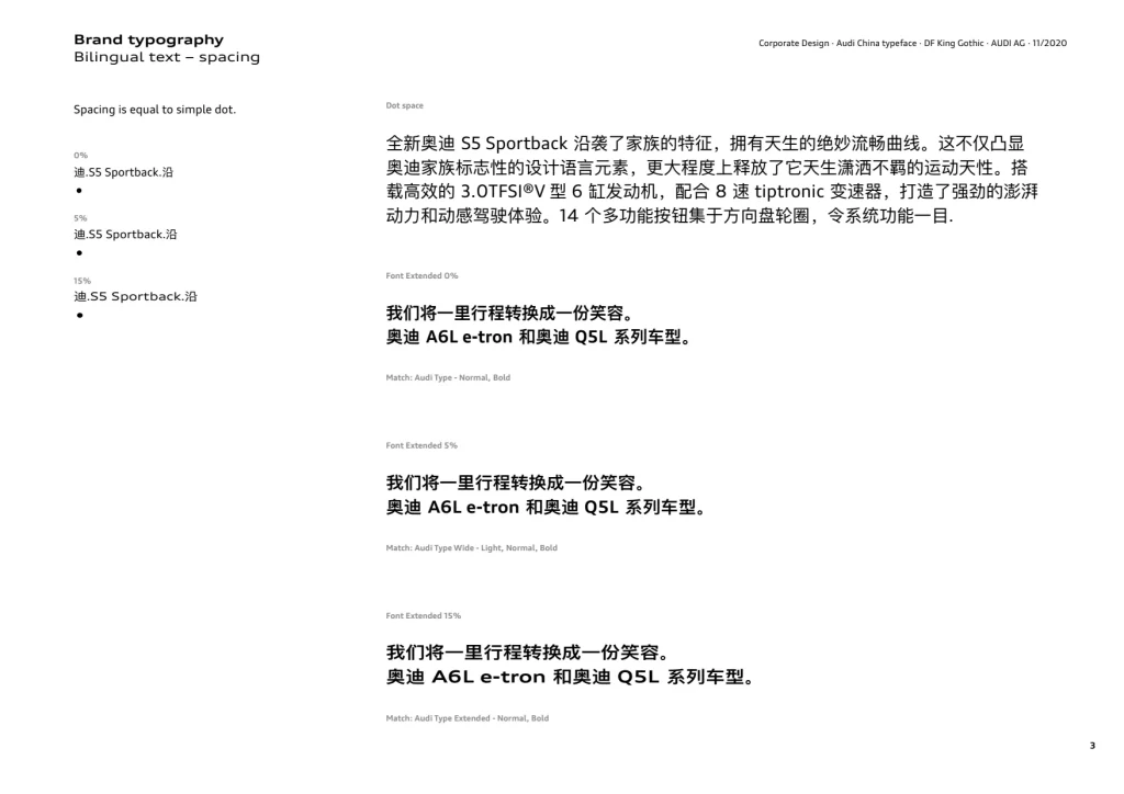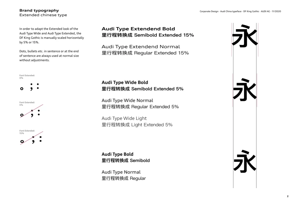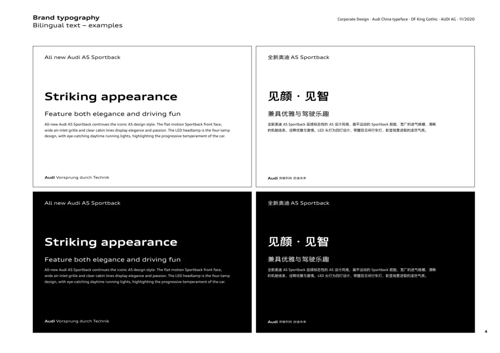 即使考虑到这种灵活性,奥迪类型也能确保所有接触点的统一品牌形象——从智能手表到电视广告。在这里,很少有元素比奥迪类型扩展在感知方面更引人注目。这种字体风格应用于标题——从普通到粗体——是品牌的一个关键区别特征。