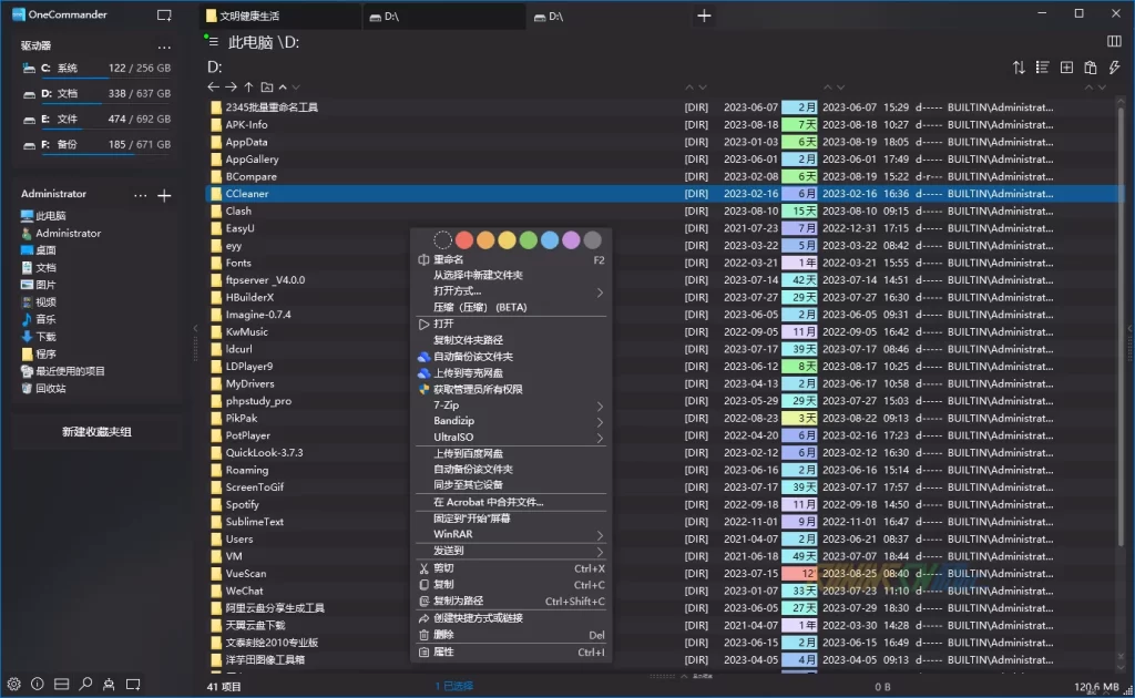 OneCommander 提供了丰富而实用的功能,包括多标签页、拖放文件移动、快速预览等。您可以方便地在多个标签之间切换,更高效地操作文件。