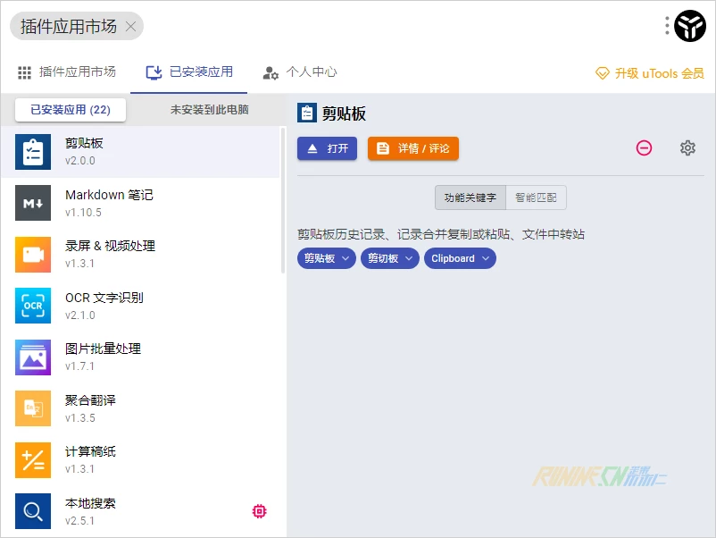 uTools解锁所有VIP插件破解版 由歪果不求仁(www.wgbqr.com)整理发布. uTools 是一款非常出色的生产力工具,软件插件应用市场集成了非常多免费而好用的功能和插件,例如快速搜索文件、网页快开、快速启动程序、剪贴板历史、备忘记录、聚合翻译、颜色助手、Crx扩展商店、OCR文字识别等更多丰富的插件应用和功能。uTools 是新一代效率工具平台,您可以自由组合插件应用,来打造专属你的趁手工具集,从而提高工作学习效率。