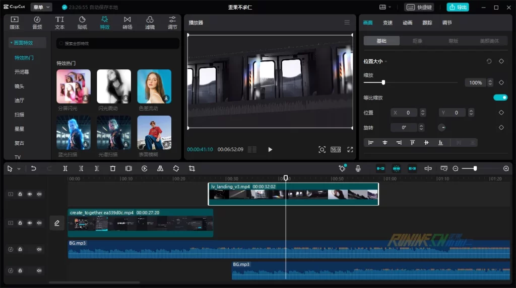 软件内置了丰富的特效和滤镜,用户可以通过添加特效和滤镜来改变视频的色彩、光影和风格,增强视觉效果,使视频更具吸引力。