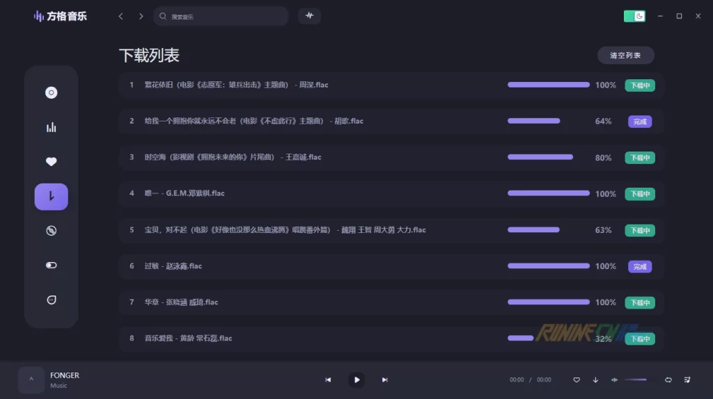 支持双击音乐列表在线播放,同时支持下载Mp3格式和无损Flac格式,给用户更多的选择