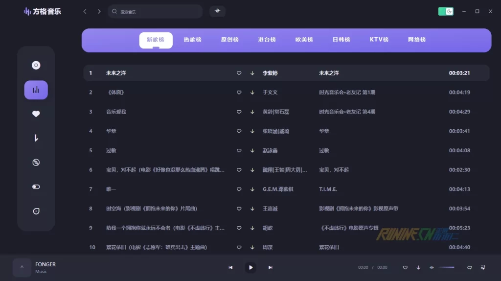提供多种不同类型的排行榜,包括新歌榜、热歌榜、原创榜、港台榜、欧美榜等,方便用户浏览和发现不同风格的音乐
