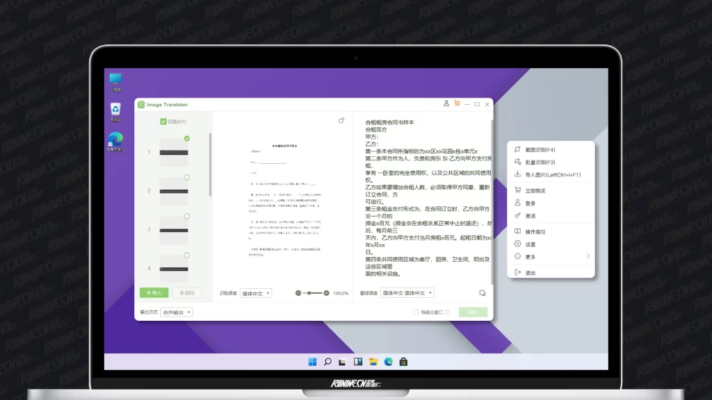 用户可以通过快捷键进行屏幕截图,并立即得到图片中文字的翻译,支持翻译成 100 多种语言。
