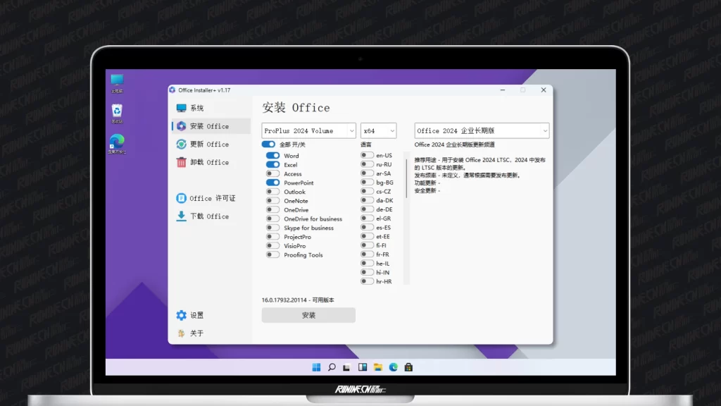 Office Installer 安装部署工具 由歪果不求仁(www.wgbqr.com)整理发布. Office Installer 是由老毛子Ratiborus开发制作的一款 Office下载/安装/激活/部署工具。软件可以在线下载安装 Office 2016-2024 的各个版本,离线安装部署Office镜像,自定义安装Office产品组件,支持Office零售版转换批量许可版,在线KMS激活Office,可选内置Office密钥许可证安装。
