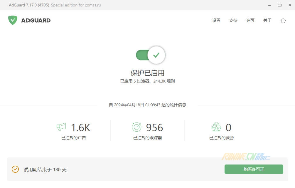 内置了自动重置试用工具(AdGuard Trial Reset.exe)