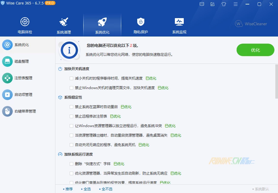 系统清理:Wise Care 365 可以清理系统垃圾、修复系统错误、清除无用的组件和文件,优化系统性能。