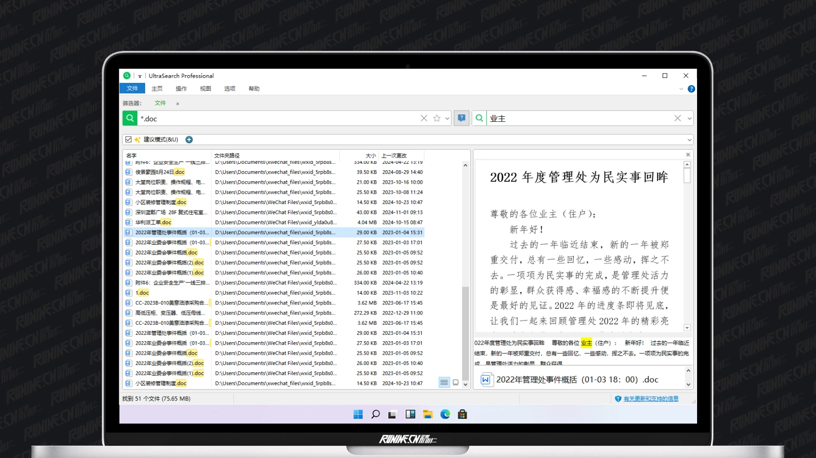 可搜索 Office 等常用文件,也可搜索系统文件和带有自定义文件扩展名的文件。
