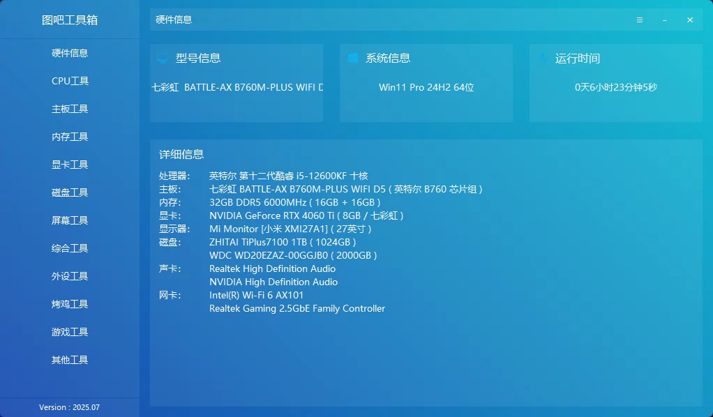 ![图片[2]-图吧工具箱 (硬件检测工具箱) v2025.07 中文正式版-墨鱼时间](https://www.wgbqr.com/wp-content/uploads/2025/06/b11d198b8820250617155517.webp)